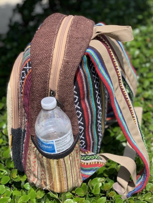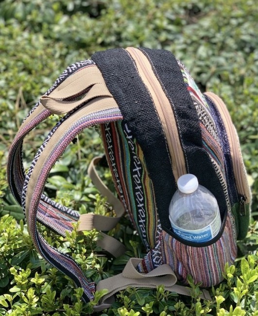 • At Himalaya Handmade we are known for creating the modern Mini hemp backpacks that are now available in profusion of design and colors. Our Mini backpack with multicolor Aztec pattern is made from eco-friendly natural hand-woven hemp and cotton fabric and it is beautifully handcrafted in Nepal, they are high quality and this backpack has everything you need. You will not find higher quality anywhere else. All of our bags are sourced from the mountainous regions of Nepal and are all 100% Handmade. This backpack features are it has a unique multi colored pocket. Handcrafted this Backpack Includes, laptop compartment – fits up to 13 inch, 4 separate zippered compartments with 2 pockets, 2 water bottle holders, extremely strong construction, strong original two metal zippers on main compartment, soft padded straps and made from 100% Hemp, the entire bag is extremely strong but also breathable. Color of these bag will not be exact because arrangement of the pattern and these bags are handmade so in color can be slightly different. Pictures color are just example. Every bag is handmade and therefore unique.