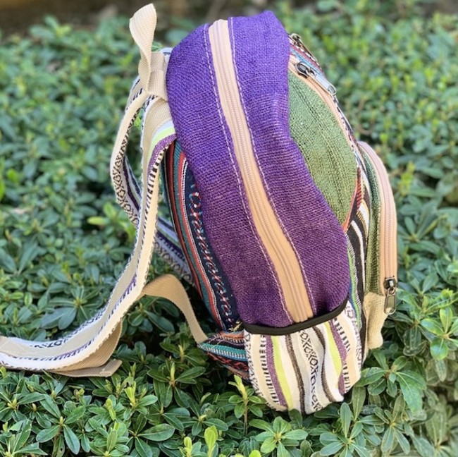 • At Himalaya Handmade we are known for creating the modern Mini hemp backpacks that are now available in profusion of design and colors. Our Mini backpack with multicolor Aztec pattern is made from eco-friendly natural hand-woven hemp and cotton fabric and it is beautifully handcrafted in Nepal, they are high quality and this backpack has everything you need. You will not find higher quality anywhere else. All of our bags are sourced from the mountainous regions of Nepal and are all 100% Handmade. This backpack features are it has a unique multi colored pocket. Handcrafted this Backpack Includes, laptop compartment – fits up to 13 inch, 4 separate zippered compartments with 2 pockets, 2 water bottle holders, extremely strong construction, strong original two metal zippers on main compartment, soft padded straps and made from 100% Hemp, the entire bag is extremely strong but also breathable. Color of these bag will not be exact because arrangement of the pattern and these bags are handmade so in color can be slightly different. Pictures color are just example. Every bag is handmade and therefore unique.