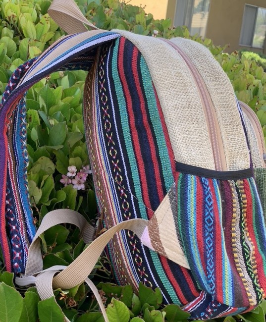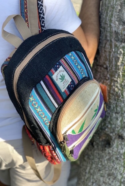 • At Himalaya Handmade we are known for creating the modern Mini hemp backpacks that are now available in profusion of design and colors. Our Mini backpack with multicolor Aztec pattern is made from eco-friendly natural hand-woven hemp and cotton fabric and it is beautifully handcrafted in Nepal, they are high quality and this backpack has everything you need. You will not find higher quality anywhere else. All of our bags are sourced from the mountainous regions of Nepal and are all 100% Handmade. This backpack features are it has a unique multi colored pocket. Handcrafted this Backpack Includes, laptop compartment – fits up to 13 inch, 4 separate zippered compartments with 2 pockets, 2 water bottle holders, extremely strong construction, strong original two metal zippers on main compartment, soft padded straps and made from 100% Hemp, the entire bag is extremely strong but also breathable. Color of these bag will not be exact because arrangement of the pattern and these bags are handmade so in color can be slightly different. Pictures color are just example. Every bag is handmade and therefore unique.