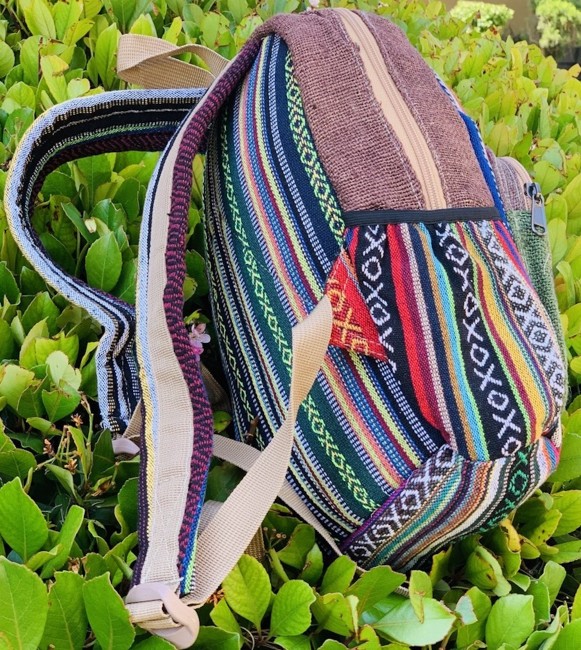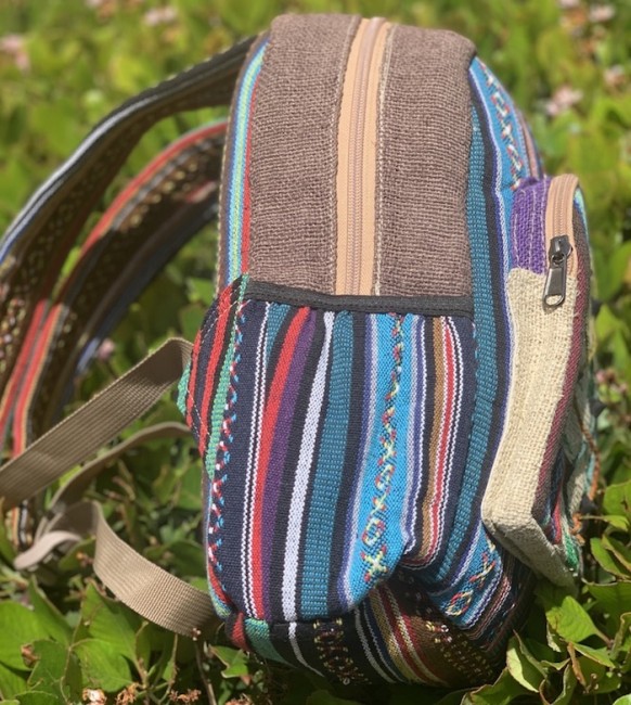 • At Himalaya Handmade we are known for creating the modern Mini hemp backpacks that are now available in profusion of design and colors. Our Mini backpack with multicolor Aztec pattern is made from eco-friendly natural hand-woven hemp and cotton fabric and it is beautifully handcrafted in Nepal, they are high quality and this backpack has everything you need. You will not find higher quality anywhere else. All of our bags are sourced from the mountainous regions of Nepal and are all 100% Handmade. This backpack features are it has a unique multi colored pocket. Handcrafted this Backpack Includes, laptop compartment – fits up to 13 inch, 4 separate zippered compartments with 2 pockets, 2 water bottle holders, extremely strong construction, strong original two metal zippers on main compartment, soft padded straps and made from 100% Hemp, the entire bag is extremely strong but also breathable. Color of these bag will not be exact because arrangement of the pattern and these bags are handmade so in color can be slightly different. Pictures color are just example. Every bag is handmade and therefore unique.