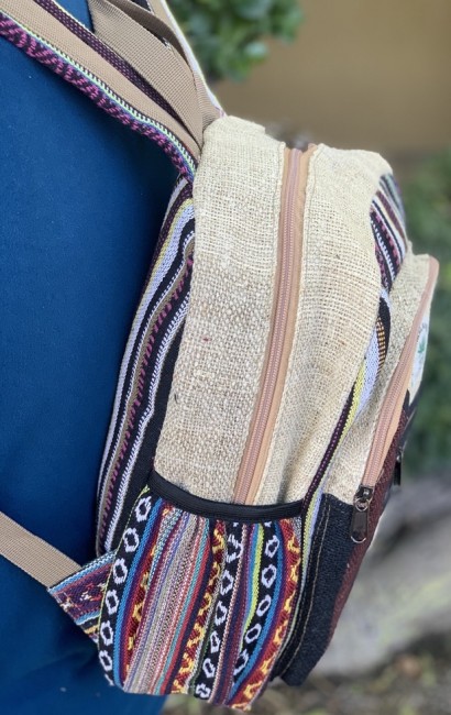 •At Himalaya Handmade we are known for creating the modern Mini hemp backpacks that are now available in profusion of design and colors. Our Mini backpack with multicolor Aztec pattern is made from eco-friendly natural hand-woven hemp and cotton fabric and it is beautifully handcrafted in Nepal, they are high quality and this backpack has everything you need. You will not find higher quality anywhere else. All of our bags are sourced from the mountainous regions of Nepal and are all 100% Handmade. This backpack features are it has a unique multi colored pocket. Handcrafted this Backpack Includes, laptop compartment – fits up to 13 inch, 4 separate zippered compartments with 2 pockets, 2 water bottle holders, extremely strong construction, strong original two metal zippers on main compartment, soft padded straps and made from 100% Hemp, the entire bag is extremely strong but also breathable. Color of these bag will not be exact because arrangement of the pattern and these bags are handmade so in color can be slightly different. Pictures color are just example. Every bag is handmade and therefore unique