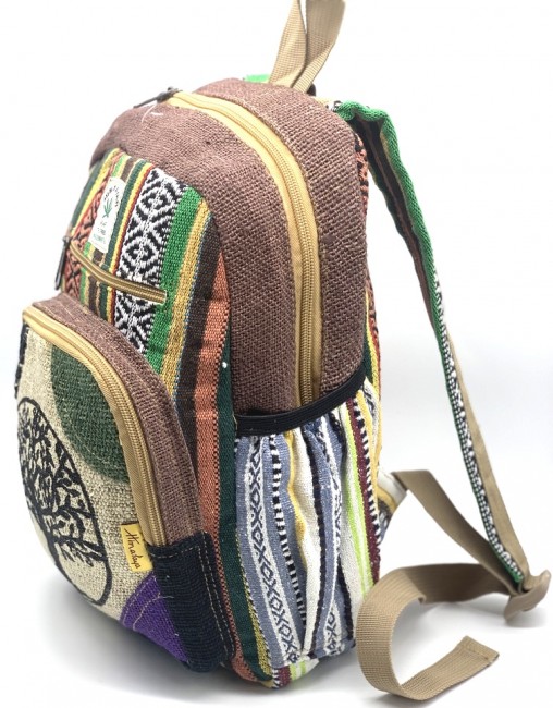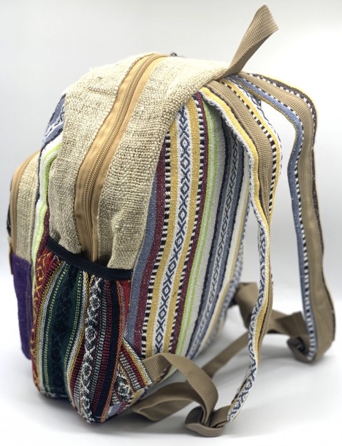 • At Himalaya Handmade we are known for creating the modern Mini hemp backpacks that are now available in profusion of design and colors. Our Mini backpack with multicolor Aztec pattern is made from eco-friendly natural hand-woven hemp and cotton fabric and it is beautifully handcrafted in Nepal, they are high quality and this backpack has everything you need. You will not find higher quality anywhere else. All of our bags are sourced from the mountainous regions of Nepal and are all 100% Handmade. This backpack features are it has a unique multi colored pocket. Handcrafted this Backpack Includes, laptop compartment – fits up to 13 inch, 4 separate zippered compartments with 2 pockets, 2 water bottle holders, extremely strong construction, strong original two metal zippers on main compartment, soft padded straps and made from 100% Hemp, the entire bag is extremely strong but also breathable. Color of these bag will not be exact because arrangement of the pattern and these bags are handmade so in color can be slightly different. Pictures color are just example. Every bag is handmade and therefore unique.