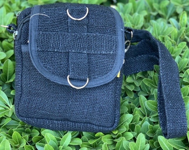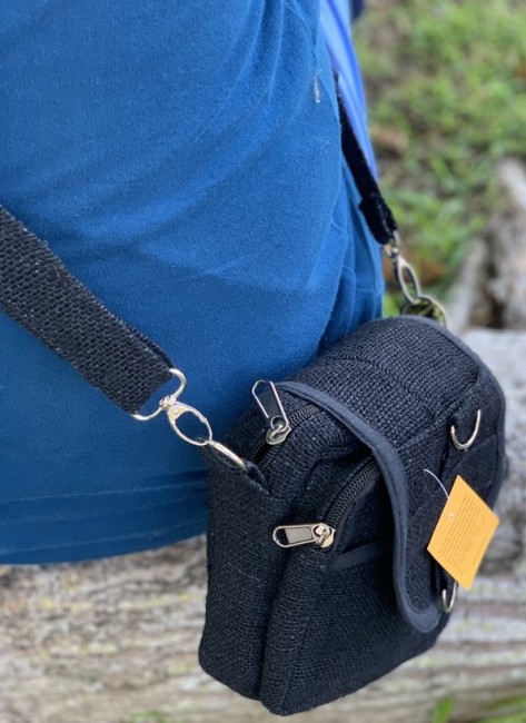 The beautiful hemp Travel bag is hand made in Nepal with pure 100% organic core hemp. This modern hemp passport bag is supremely versatile and fashionable. This bag features are it has two compartments with zippers and it has adjustable strap with outside two pockets in the front and in the main pocket above with a zipper. It is fair trade product.