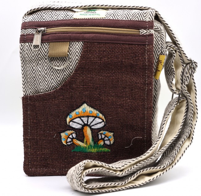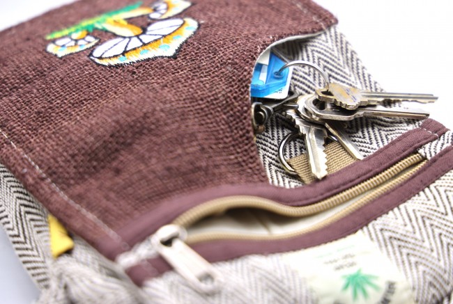 The beautiful hemp Travel bag is hand made in Nepal with pure 100% organic Himalaya hemp. This modern hemp passport bag is supremely versatile and fashionable. This bag features are it has two compartments with zippers and it has adjustable strap with outside two pockets in the front and in the main pocket above with a zipper. It is a fair trade made product.