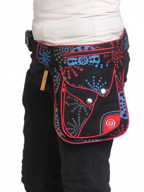 100% pure cotton colorful money belt handmade in Nepal. This product can be use by both man and women. This bag has charming features, it has beautiful print and flower embroideries,it is practical and versatile because it can be belt bag/fanny pack /shoulder bag, it has 3 pocket with zippers, main pocket has magnetic button, 1 pocket is hidden on the back side, small pocket on the outside also has magnetic button, the belt is adjustable which can make shorter and longer as well. It is fair trade product.
