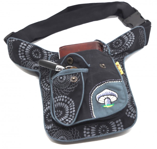 100% pure cotton colorful money belt handmade in Nepal. This product can be use by both men and women west or can be worn lower on the hips. This bag has charming features, it has beautiful print and flower embroideries, it is practical and versatile because it can be belt bag/fanny pack /shoulder bag, it has 3 pockets sized 6.50" x 9" inches with zippers, main pocket has a magnetic button, 1 pocket is hidden on the back side, small pocket on the outside also has a magnetic button, the belt is adjustable from 29 - 40 inches which can be made shorter and longer as well. This is a Fair Trade product.