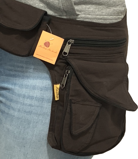 100% pure cotton patch money belt handmade in Nepal. This product can be use by both man and women. This bag has charming features, it is practical and versatile because it can be belt bag/fanny pack /shoulder bag, it has 3 pocket with zippers, main pocket has magnetic button, 1 pocket is hidden on the back side, small pocket on the outside also has magnetic button, the belt is adjustable which can make shorter and longer as well. It is fair trade product.