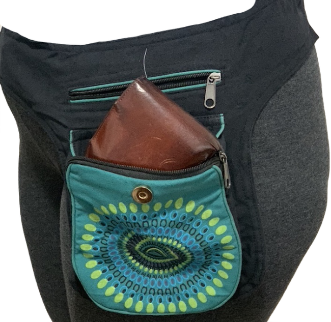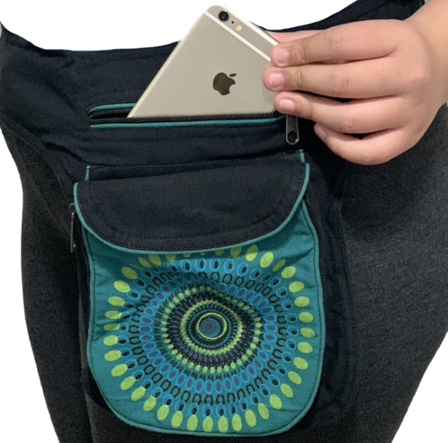 100% pure cotton colorful money belt handmade in Nepal. This product can be use by both man and women. This bag has charming features, it has beautiful Mandala print, it is practical and versatile because it can be belt bag/fanny pack /shoulder bag, it has 3 pocket with zippers, main pocket has magnetic button, 1 pocket is hidden on the back side, small pocket on the outside also has magnetic button, the belt is adjustable which can make shorter and longer as well. It is fair trade product.