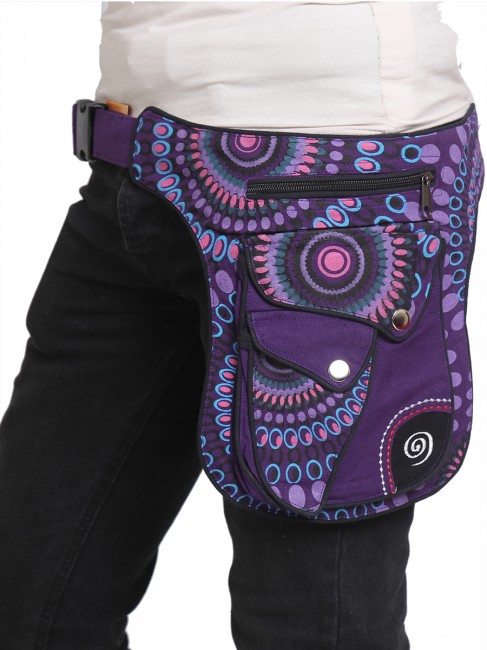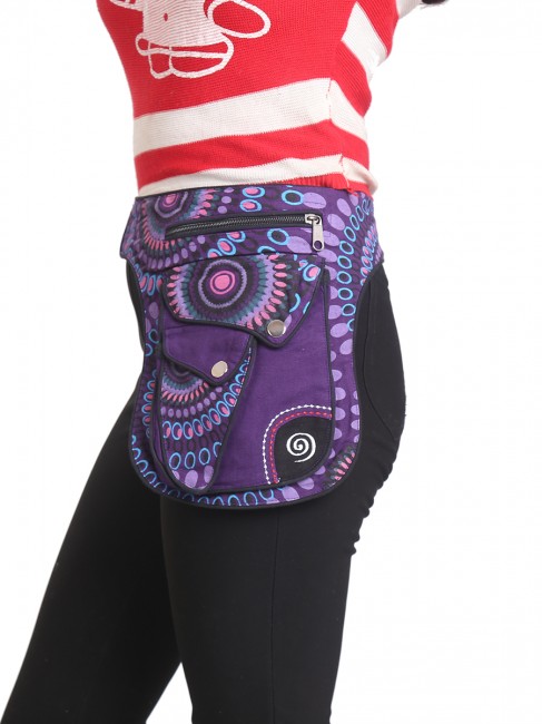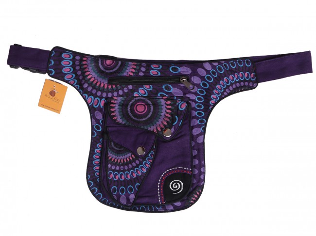 100% pure cotton colorful money belt handmade in Nepal. This product can be use by both man and women. This bag has charming features, it has beautiful Mandala print and Spiral embroideries,it is practical and versatile because it can be belt bag/fanny pack /shoulder bag, it has 3 pocket with zippers, main pocket has magnetic button, 1 pocket is hidden on the back side, small pocket on the outside also has magnetic button, the belt is adjustable which can make shorter and longer as well. It is fair trade product.