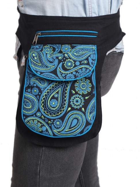 100% pure cotton colorful money belt handmade in Nepal. This product can be use by both man and women. This bag has charming features, it has beautiful flower print, it is practical and versatile because it can be belt bag/fanny pack /shoulder bag, it has 3 pocket with zippers, main pocket has magnetic button, 1 pocket is hidden on the back side, small pocket on the outside also has magnetic button, the belt is adjustable which can make shorter and longer as well. It is fair trade product.