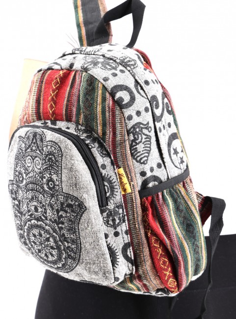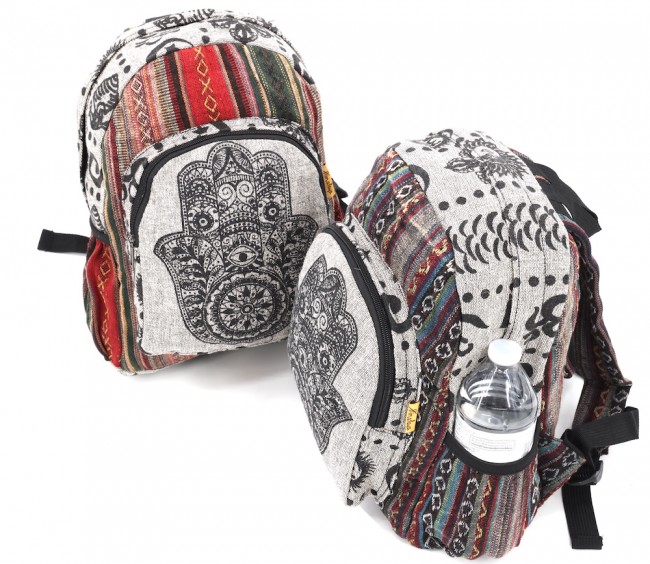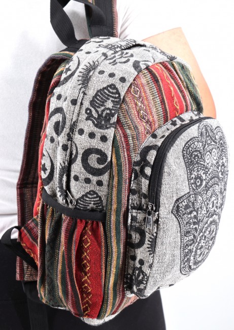 At Himalaya Handmade we are known for creating the modern Mini Cotton backpacks that are now available in profusion of design and colors. Our Mini backpack with multicolor Aztec pattern is made from eco-friendly natural hand-woven Cotton and cotton fabric and it is beautifully handcrafted in Nepal, they are high quality and this backpack has everything you need. You will not find higher quality anywhere else. All of our bags are sourced from the mountainous regions of Nepal and are all 100% Handmade. This backpack features are it has a unique multi colored pocket. Handcrafted this Backpack Includes, laptop compartment – fits up to large tablet, 4 separate zippered compartments with 2 pockets, 2 water bottle holders, extremely strong construction, strong original two metal zippers on main compartment, soft padded straps and made from 100% Cotton, the entire bag is extremely strong but also breathable. Color of these bag will not be exact because arrangement of the pattern and these bags are handmade so in color can be slightly different. Pictures color are just example. Every bag is handmade and therefore unique.