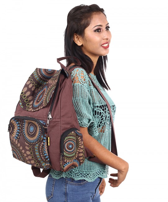 This beautiful Mandala printed 100% pure cotton back pack are handmade in Nepal. This beautiful back pack features are it has two compartment with zippers, it has secrete pocket with zipper in side the main compartment, two pocket on the side, the main compartment has cover and it has a long adjustable soft strap and this back pack pack is unique, extraordinary,versatile and fashionable. This cotton back pack is fair trade product.