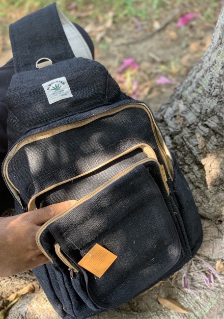 This Core Hemp sling bag crossbody backpack is the perfect replacement for a traditional fanny pack. With the Adjustable strap, this sling bag fits all body types and can be worn over the shoulder across the chest or back. This sling bag features 3 front zipper compartments, 1 inner zipper compartment & inner padding for added safety. The Core Hemp material makes this sling bag very durable with an added urban/sporty appeal.