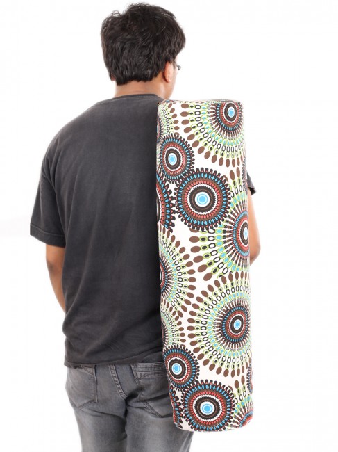 100% Pure cotton beautiful Mandala print yoga mat bag handmade in Nepal. This yoga mat bag is a perfectly comfortable accessory to carry with you to class. Story behind this Mandalas print they are used for meditation purposes allowing the individual meditating to become one with the universe. There are not many who are able to achieve this state of mind from just studying a mandala. The symbolism behind the creation of a mandala can have significant meaning for many individuals whether they are Jewish, Buddhist, Christian, Pagan or of any other religious orientation. This is the reason we made the yoga mat bag with the Mandala print. It has small secrete pocket inside the compartment and the strap is adjustable it can be adjust according to your needs. This product for both male and female.