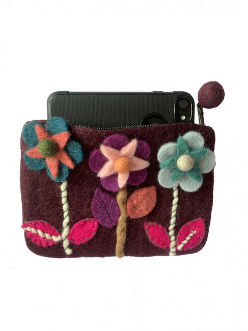 This flower design coin purses is unique in many ways. First, it is hand felted by the local Nepalese women with dedication and lots of love at our associate felt production house in village of Nepal. it has that sweet and beautiful color flower which gives it an extra edgy look. Slight variation in color, size, shape on the purse enhances the individuality, making each piece unique and special. It is trending towards a fashion statement these days. Vibrant colors and different patterns along with unique design give it an edge over the normal ones. Must grab item, we added. The size of this purs is 6 inch height and 8 inch wide across opening side.