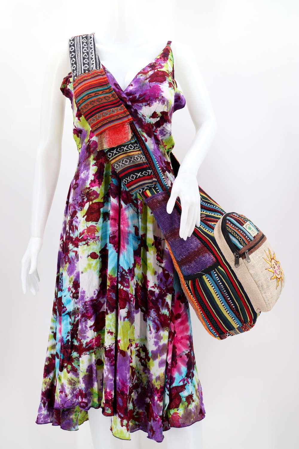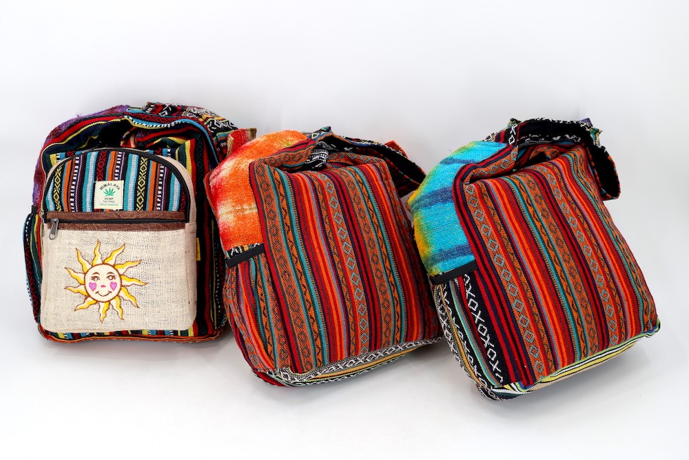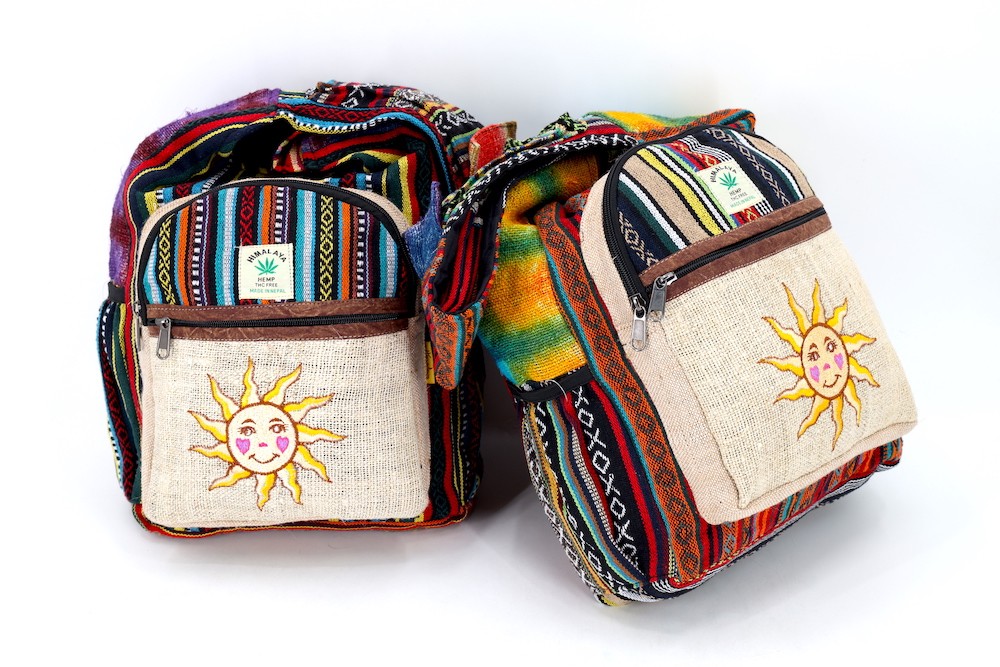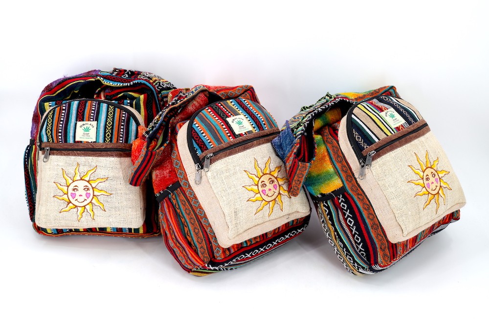 A versatile and beautiful sun embroidery colorful 100% Natural Handwoven Hemp stitched by talented artisans in Himalaya range of Nepal. Purchasing means supporting underprivileged Nepalese communities who help make these bags.
