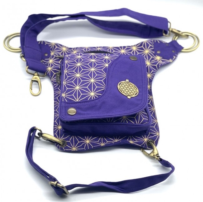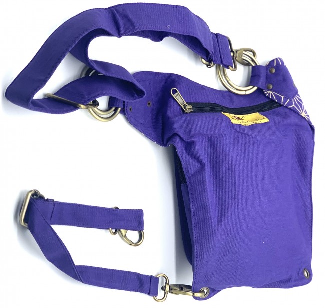An adjustable hip bag, can be worn around the waist/hip or extend the strap to make it a shoulder bag! Each end of the straps has a large clip, so they can be attached in many different ways depending on your needs. Wearing a skirt? The brass hoops on the front can be used as decoration, or clipping on keychains and charms. The fanny pack also has a thigh strap which contains a clip which can be used as an extra layer of protection that can be worn around your thigh.