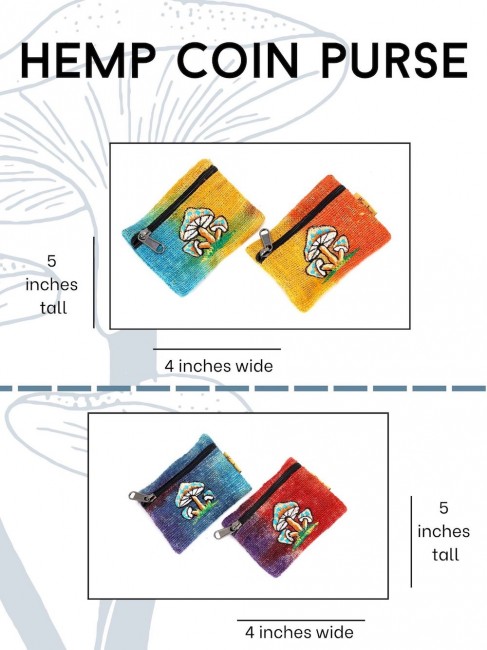 At Himalaya Handmade we are known for our beautiful hemp items, and this coin purse continues the legacy. Not only does it come in many different colors, but it is also embroidered with our famous mushroom design. With that being said, this purse alone can fit jewelry, credit cards, cash, coins, your keys, and much more! It can be used during any occasion as it is a very portable item.
