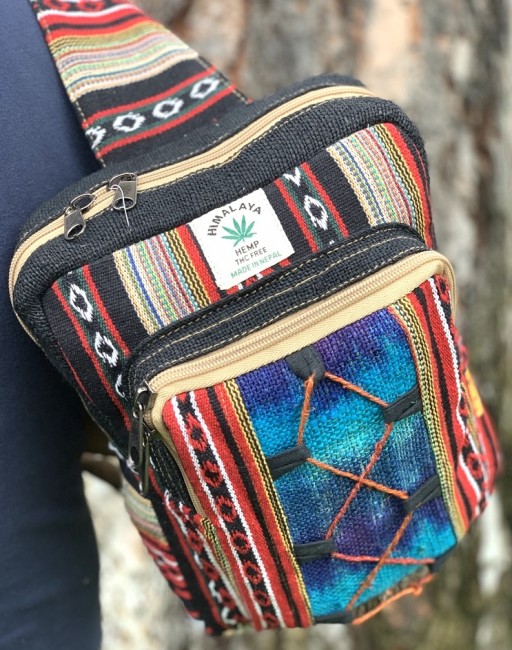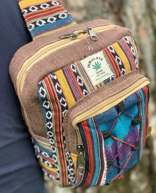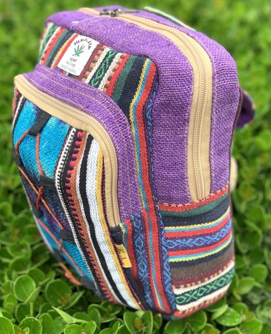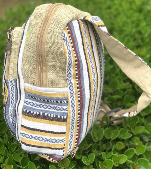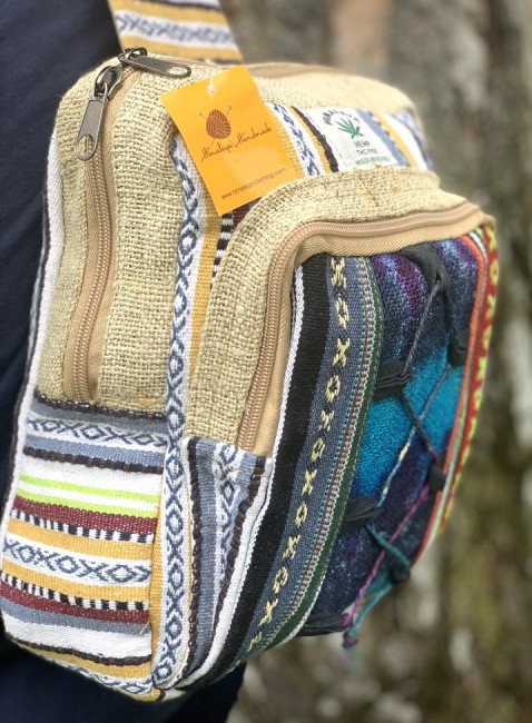 • At Himalaya Handmade we are known for creating the modern Mini Sling hemp backpacks that are now available in profusion of design and colors. Our Mini backpack with multicolor Aztec pattern is made from eco-friendly natural hand-woven hemp and cotton fabric and it is beautifully handcrafted in Nepal, they are high quality and this backpack has everything you need. You will not find higher quality anywhere else. All of our bags are sourced from the mountainous regions of Nepal and are all 100% Handmade. This backpack features are it has a unique multi colored pocket. Handcrafted this Backpack Includes, tablet compartment – fits up to large tablet, 3 separate compartments with 2 pockets being zippered, extremely strong construction, strong original two metal zippers on main compartment, soft padded straps and made from 100% Hemp, the entire bag is extremely strong but also breathable. Color of these bag will not be exact because arrangement of the pattern and these bags are handmade so in color can be slightly different. The image for display is just one of many designs that are available. Every bag is handmade and therefore unique.