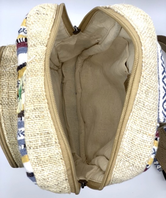 At Himalaya Handmade we are known for creating the modern single strap mini Sling hemp backpacks that are now available in profusion of design and colors. Our Mini backpack with multicolor Aztec pattern is made from eco-friendly natural hand-woven hemp and cotton fabric and it is beautifully handcrafted in Nepal, they are high quality and this backpack has everything you need. You will not find higher quality anywhere else. All of our bags are sourced from the mountainous regions of Nepal and are all 100% Handmade. This backpack features are it has a unique multi colored pocket. Handcrafted this Backpack Includes, tablet compartment – fits up to large tablet, 3 separate compartments with 2 pockets being zippered, extremely strong construction, strong original two metal zippers on main compartment, soft padded straps and made from 100% Hemp, the entire bag is extremely strong but also breathable. Color of these bag will not be exact because arrangement of the pattern and these bags are handmade so in color can be slightly different. The image for display is just one of many designs that are available. Every bag is handmade and therefore unique.