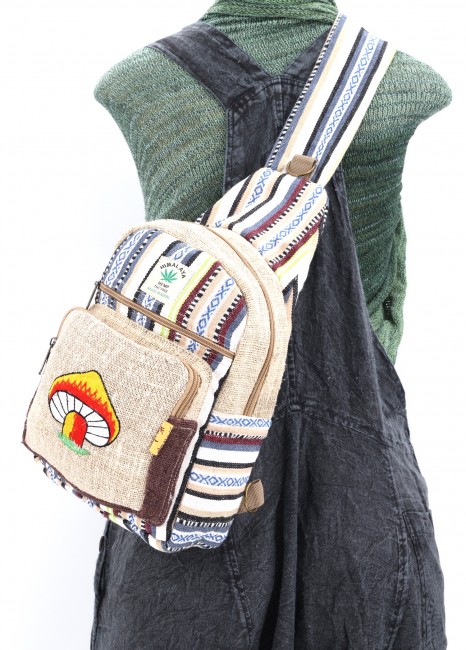 This Himalaya Hemp sling bag crossbody backpack is the perfect replacement for a traditional fanny pack. With the Adjustable strap, this sling bag fits all body types and can be worn over the shoulder across the chest or back. This sling bag features 2 front zipper compartments, 1 inner zipper compartment & inner padding for added safety. The Himalaya Hemp material makes this sling bag very durable with an added urban/sporty appeal.