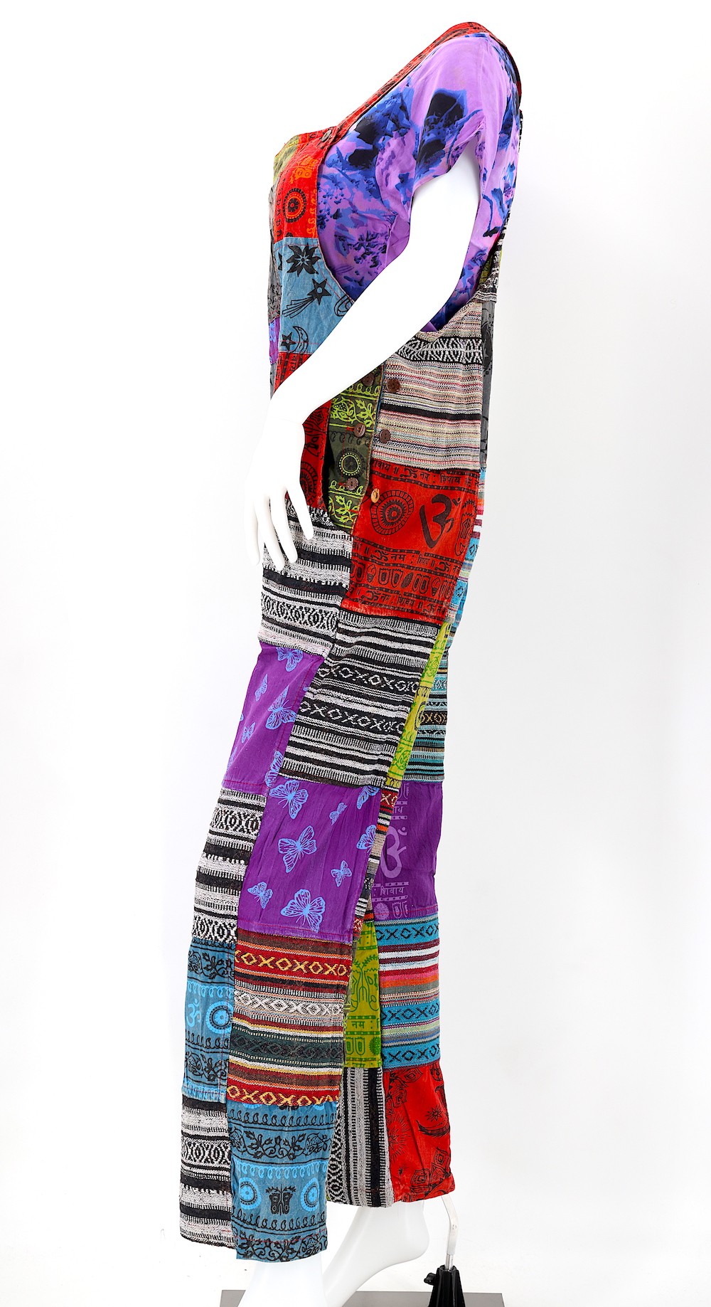 What makes the gheri multi-patched overall special is that it is handmade in Nepal and made to fit people of all sizes. With that being said not only is it a very trendy piece but it is also made to spark up your closet. This comfortable to wear item comes in 3 sizes: S/M, L/XL & XXL and can be worn by people of all genders and identification.