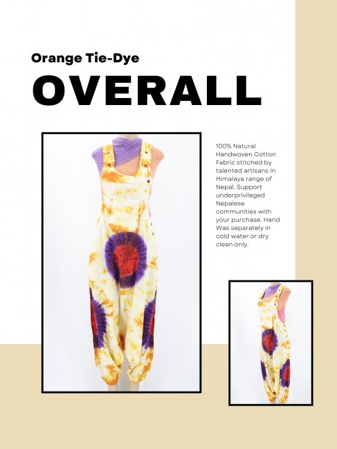 A versatile and beautiful Tie Dye Overall 100% Natural Cotton Fabric stitched by talented artisans in Himalaya range of Nepal. Support underprivileged Nepalese communities with your purchase.