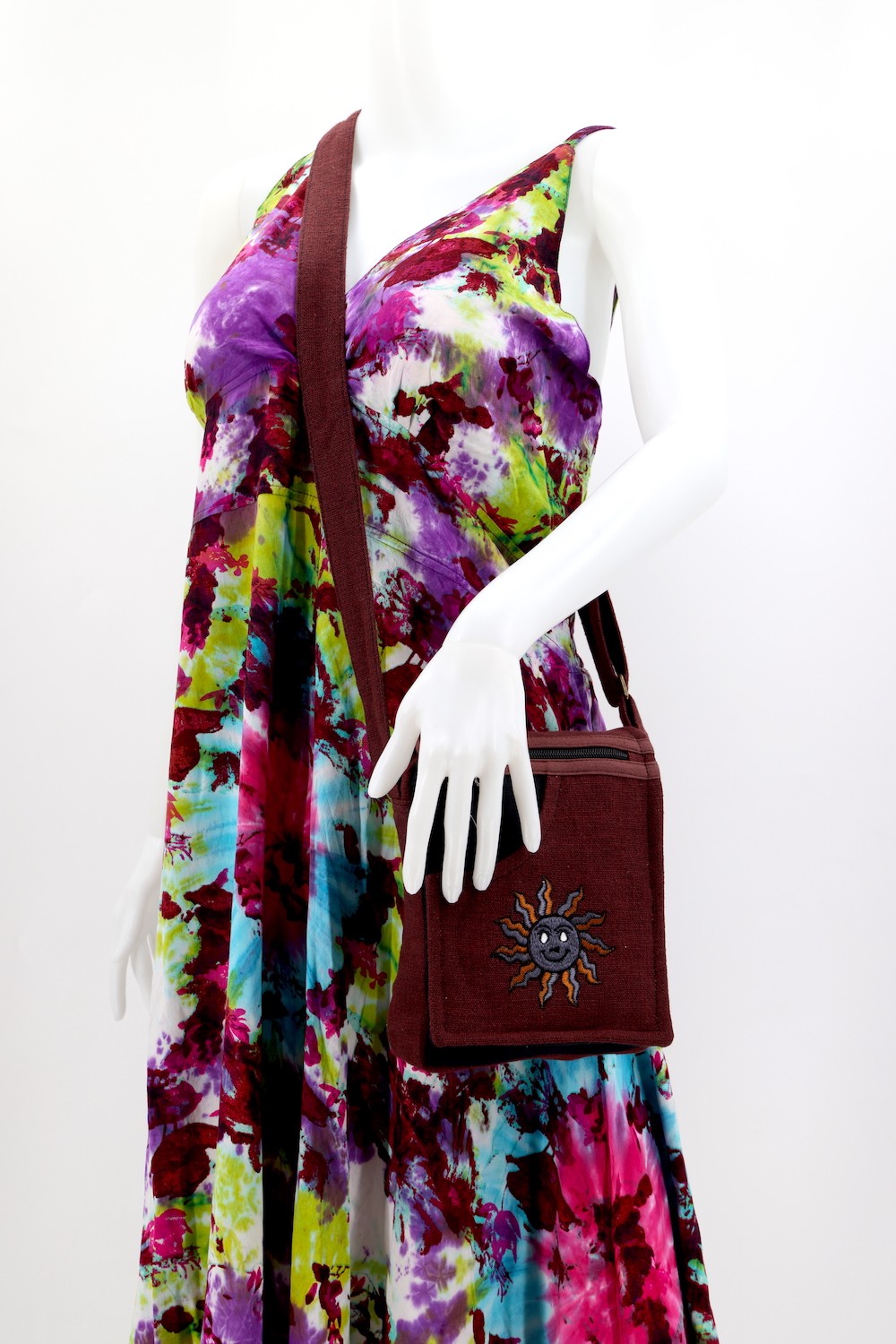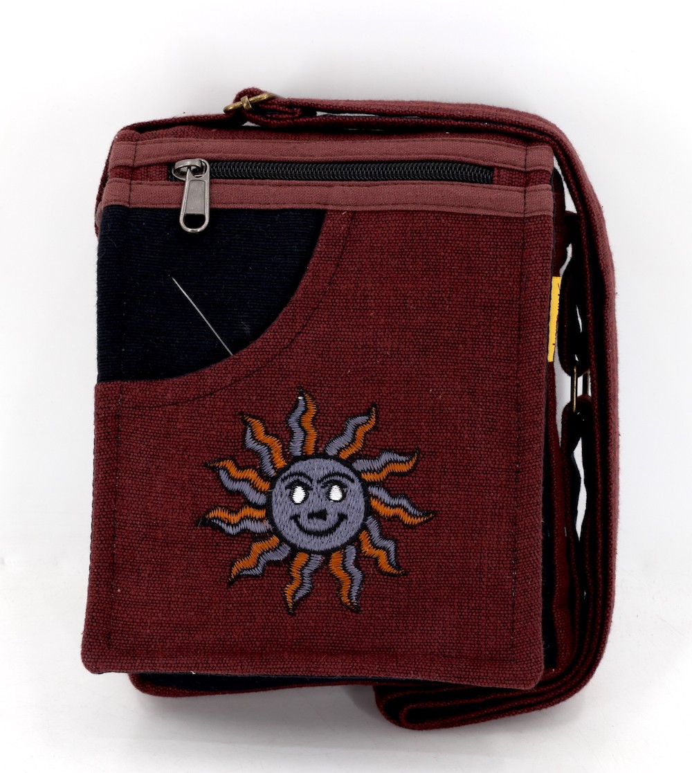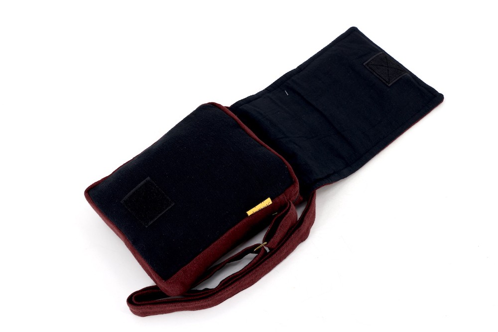 The beautiful Hand-Woven Cotton Travel bag is hand made in Nepal with pure 100% organic Himalaya Cotton. This modern Mushroom Embroidery Cotton passport bag is supremely versatile and fashionable. This bag features are it has two compartments with zippers and it has adjustable strap with outside two pockets in the front and in the main pocket above with a zipper. It is a fair trade made product.