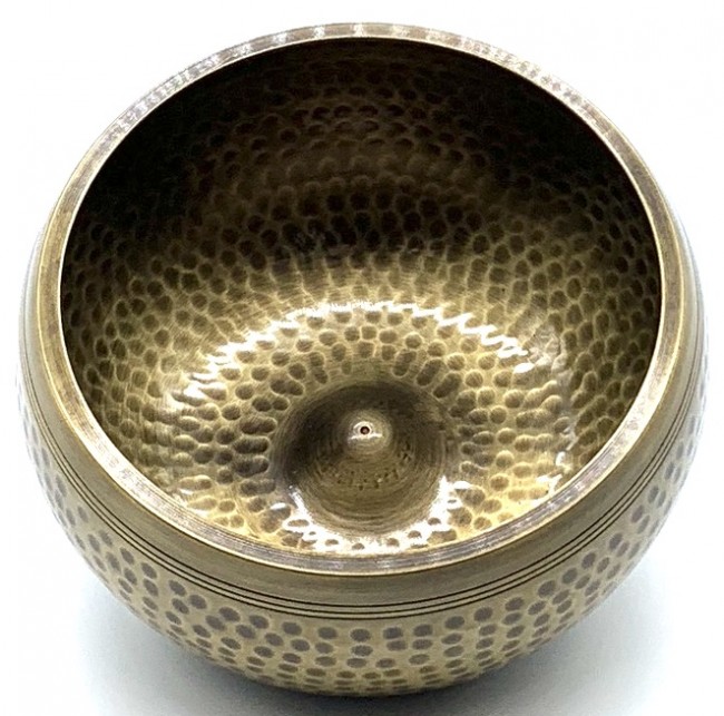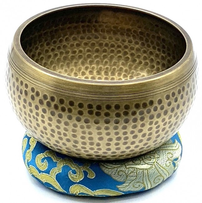 AUTHENTIC HAND HAMMERED (BEATEN) TIBETAN SINGING BOWL SET — This high-quality handcrafted meditation bowl set includes a wooden striker and hand sewn cushion. It is hand hammered in the Himalayan Foothills by Nepalese artisans to be as unique as you are and to create an ambience for emotional calming & healing.