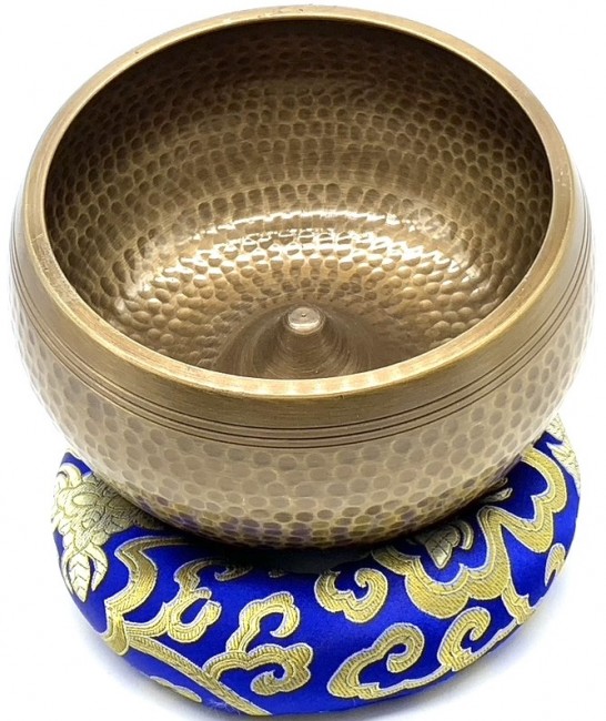 AUTHENTIC HAND HAMMERED (BEATEN) TIBETAN SINGING BOWL SET — This high-quality handcrafted meditation bowl set includes a wooden striker and hand sewn cushion. It is hand hammered in the Himalayan Foothills by Nepalese artisans to be as unique as you are and to create an ambience for emotional calming & healing.