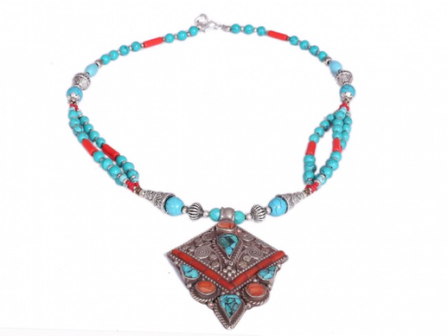 Add the finishing touch to any outfit with our beautiful and authentic handmade German sterling silver mixed with turquoise polished stone necklace for women. These necklaces are crafted by using only simple hand tools and perfected silver inset with quality gemstone. Add your choice of charm or browse our range of engraved styles.