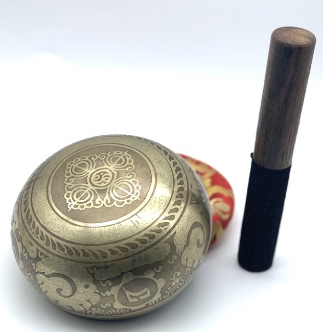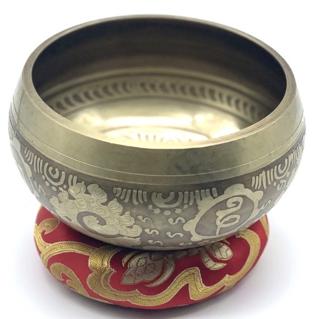 AUTHENTIC HAND HAMMERED (BEATEN) TIBETAN SINGING BOWL SET — This high-quality handcrafted meditation bowl set includes a wooden striker and hand sewn cushion. It is hand hammered in the Himalayan Foothills by Nepalese artisans to be as unique as you are and to create an ambience for emotional calming & healing.