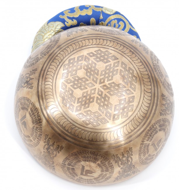 Ganesha engraved in the center, surrounded by Om symbol as well as Buddhist themed engraving on the inside and the outside