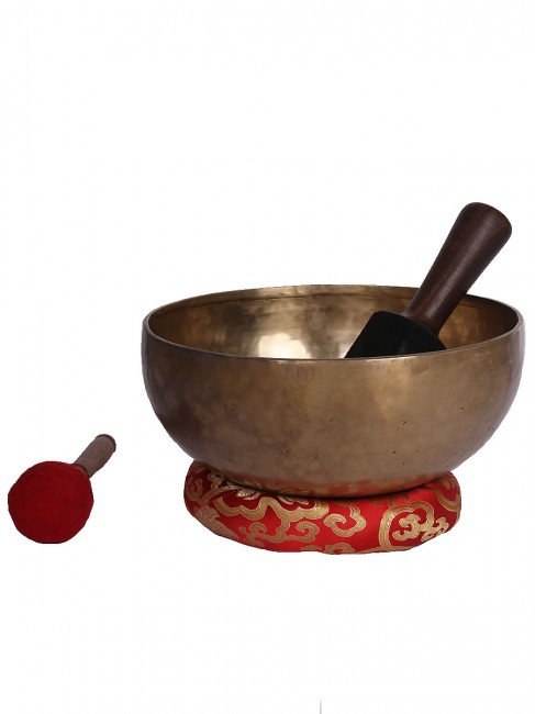 A beautiful hand hammered plain singing bowl made from the combination of seven different metals. The singing bowl produces a relaxing and harmonious sound which is used for yoga, music therapy, to reduce the stress, religious ceremonies and sound healing. It comes with free wooden Mallet and Silk cushion.