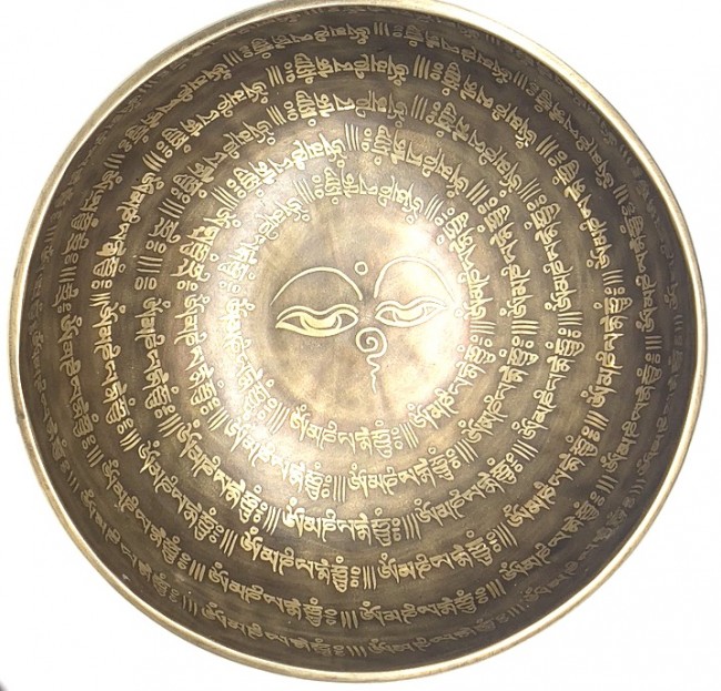 Buddhist chants in Tibetan engraved with Buddha Eye in the front and the back with Buddhist Chants and Sea Shell engraved in the center