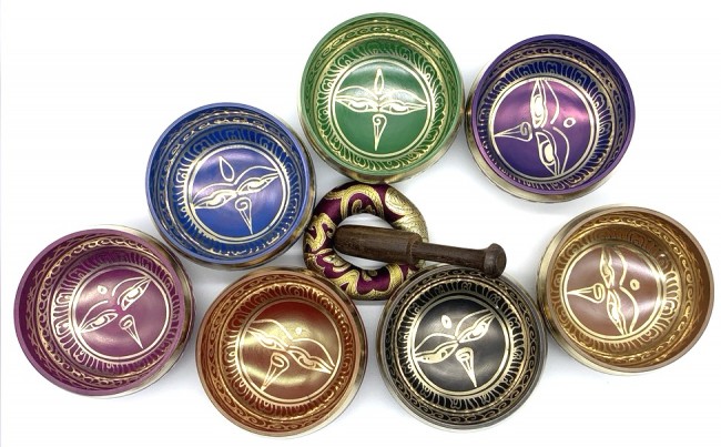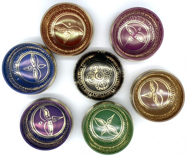 Buddha eye engraving on the inside and Buddhist chant with Dorje engraving on the outside