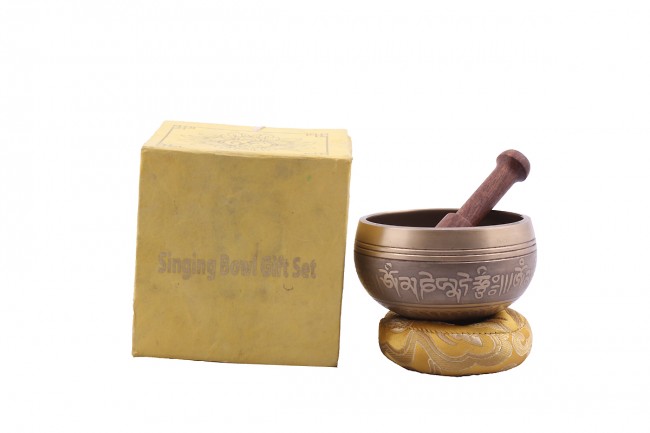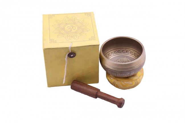 Bowls are made from a mix of traditional metals. It is made from the combination of seven different metals such as iron, mercury, copper, tin, lead, gold and silver. The singing bowl creates a relaxing and harmonious sound which is used for yoga, music therapy, to clean the atmosphere around us and sound healing. Made in Nepal.
