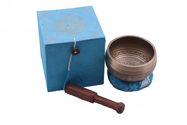 Bowls are made from a mix of traditional metals. It is made from the combination of seven different metals such as iron, mercury, copper, tin, lead, gold and silver. The singing bowl creates a relaxing and harmonious sound which is used for yoga, music therapy, to clean the atmosphere around us and sound healing. Made in Nepal.