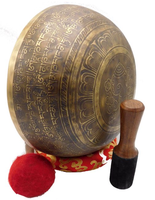 The best way to play the bowl is to tap it with a mallet. Concentrating on the bowl, especially the pulses of sound as they become quieter and quieter, is an excellent way to bring the mind into focus.