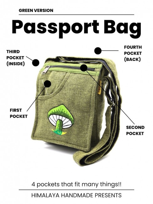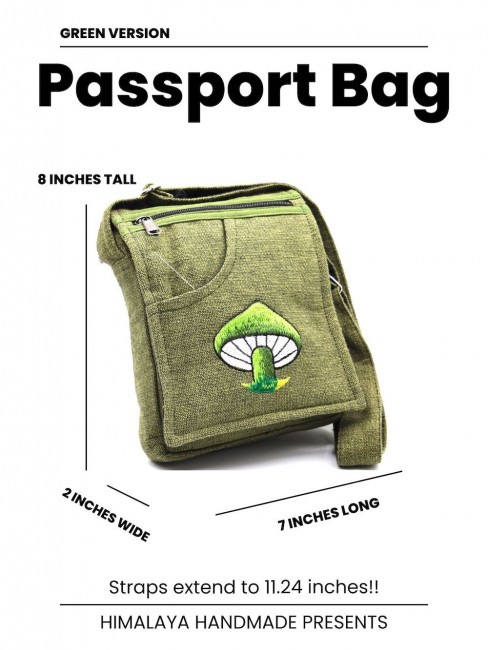 This beautiful Mushroom embroidered 100% pure cotton passport bags are handmade in Nepal. This beautiful passport bag features are it has one pocket in the front & one pocket in the back, it has two compartments, a large main compartment with zippered pocket inside and it has a long adjustable strap 11”-24” inch which you can clutch the bag across your body. This cotton passport bag is extraordinary and fashionable. This passport bag is suitable for carrying document, Mini Tablet, Mobile Phone and Purses.