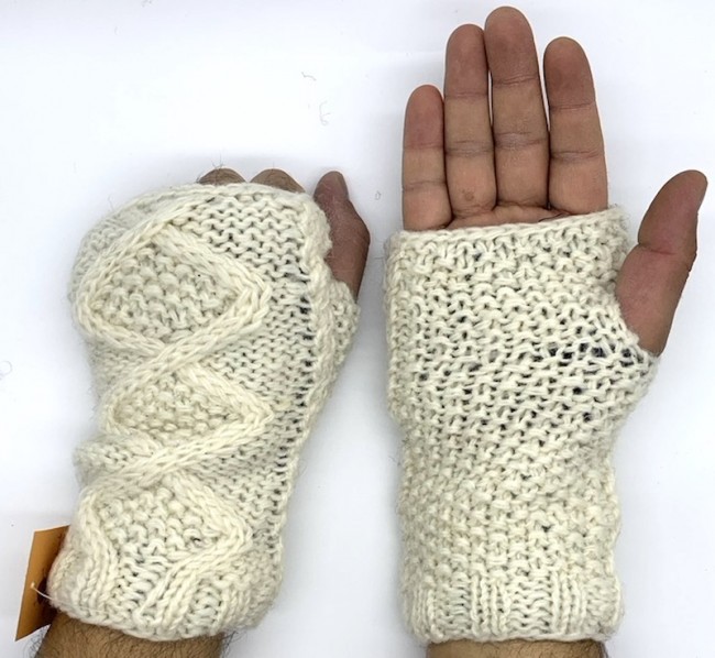 . Double Hand knitted with the highest quality 100% Wool with Fleece Lining, it is very comfortable and its one size fits for. Finger holes are not lined. Dimensions: 9”-Inch-Long x 5”-inch-Wide / 22.86 CM Long x 12.7 CM Wide