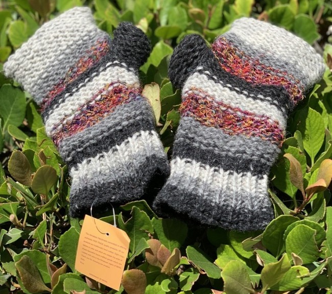Woolen hand warmers are made by 100% finest quality of New Zealand wool and inside lined with the softest and thickest polar fleece which gives you cozy feel. They are hand knitted and beautifully crafted by our experienced woman in Nepal with unique design. This stylish arm warmer will surely keep you warm. These woolen hand warmers are itch – free.