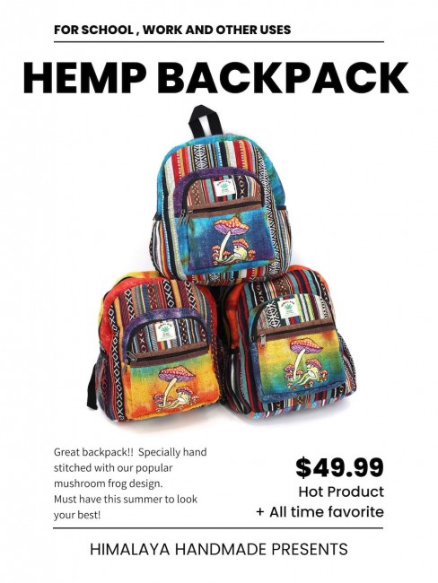 - At Himalaya Handmade we are known for creating the modern Mini hemp backpacks that are now available in profusion of design and colors. Our Mini backpack with multicolor Aztec pattern is made from eco-friendly natural hand-woven hemp and cotton fabric and it is beautifully handcrafted in Nepal, they are high quality and this backpack has everything you need. You will not find higher quality anywhere else. All of our bags are sourced from the mountainous regions of Nepal and are all 100% Handmade. This backpack features are it has a unique multi colored pocket. Handcrafted this Backpack Includes, laptop compartment – fits up to large tablet, 4 separate zippered compartments with 2 pockets, 2 water bottle holders, extremely strong construction, strong original two metal zippers on main compartment, soft padded straps and made from 100% Hemp, the entire bag is extremely strong but also breathable. Color of these bag will not be exact because arrangement of the pattern and these bags are handmade so in color can be slightly different. Pictures color are just example. Every bag is handmade and therefore unique.